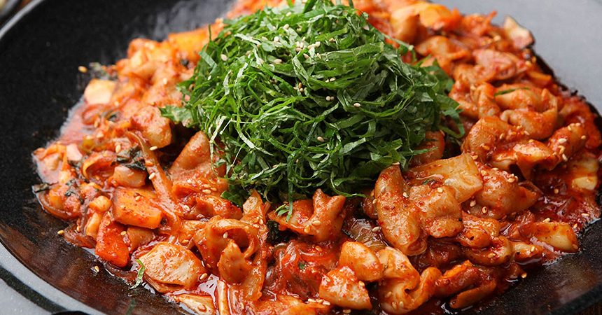 구워낸 곱창에 양념을 한 번 더 입혀